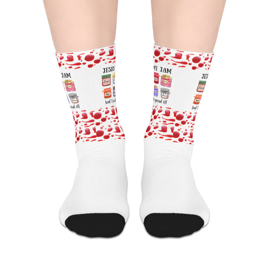 Fun Jesus is my Jam-Themed Mid-Length Socks, Playful, Cozy Style for Everyday Wear, Trendy Sock [...]