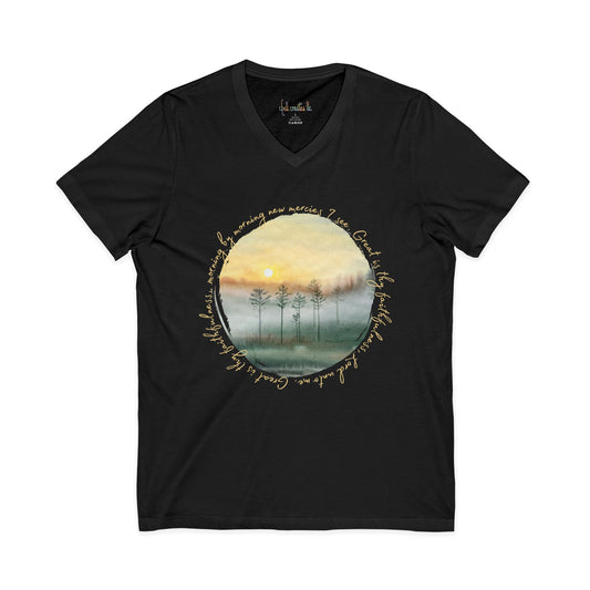 Great Is Thy Faithfulness Unisex Jersey Short Sleeve V-Neck Tee