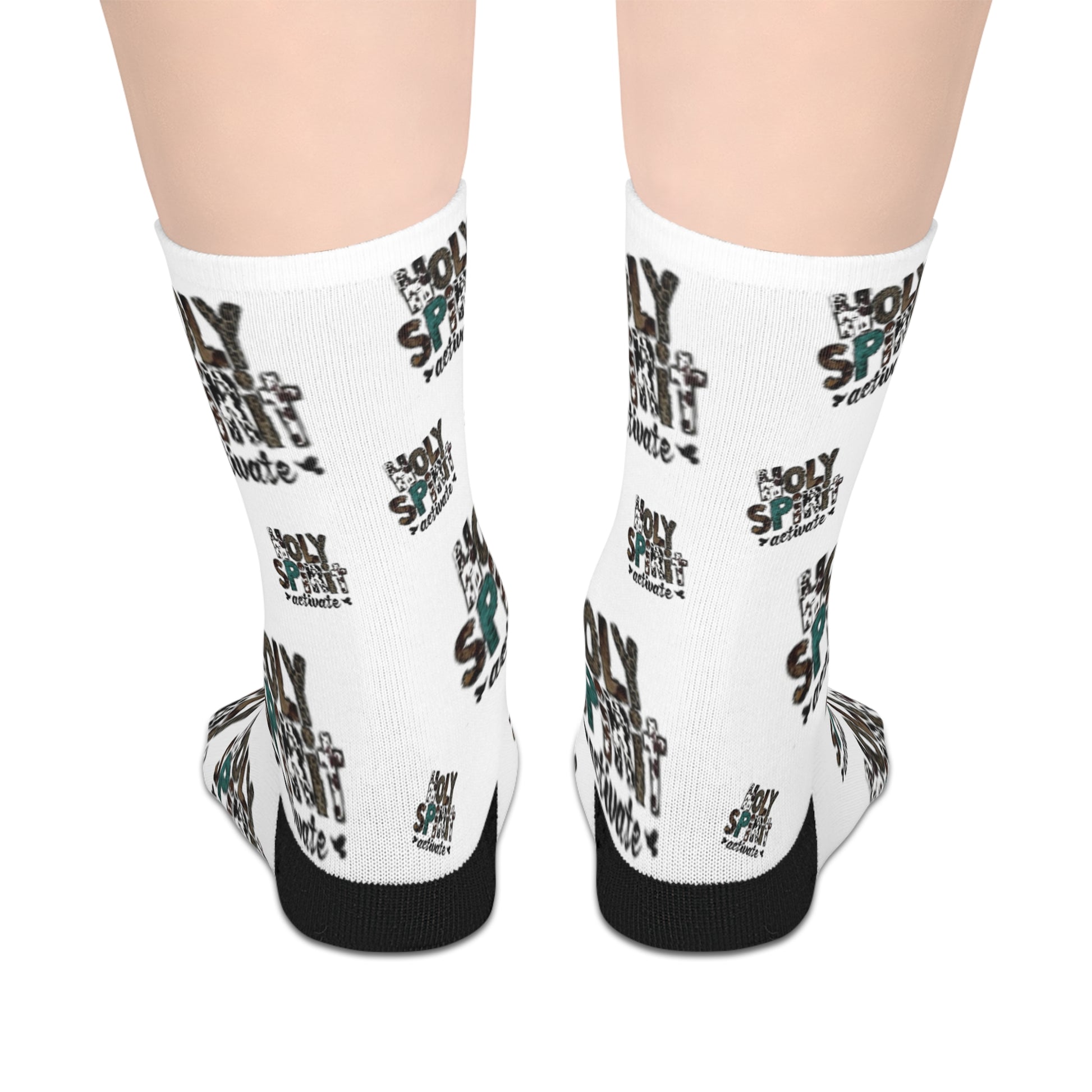 Holy Spirit Activate socks bringing a fun and inspiring vibe to your wardrobe. Perfect for those who enjoy unique and meaningful accessories. Ideal for gifting during religious holidays, celebrations, and special occasions.